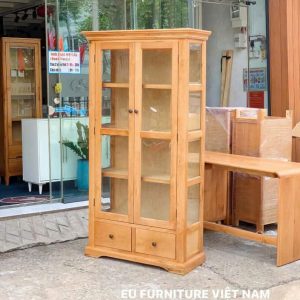 Tủ trưng bày gỗ sồi 3 mặt kính 2 cánh 2 hộc CMR