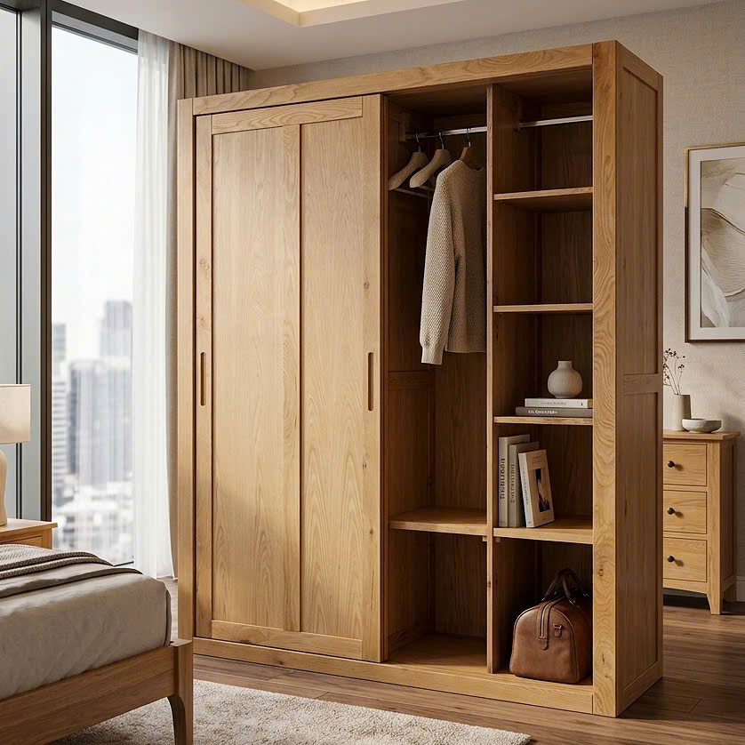 Tủ áo cửa lùa 2 cánh gỗ sồi Mỹ Vancouver