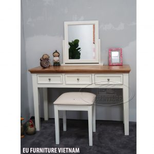 Kiểu dáng: bàn được thiết kế với 3 ngăn kéo phía dưới và 2 hộc nhỏ phía trên theo phong cách bộ sưu tập Eu Furniture Viet Nam