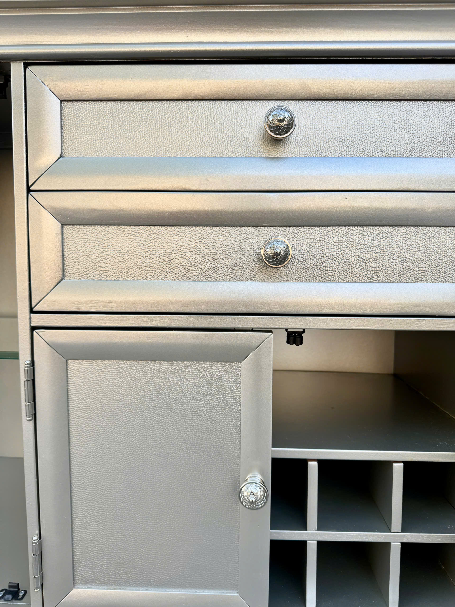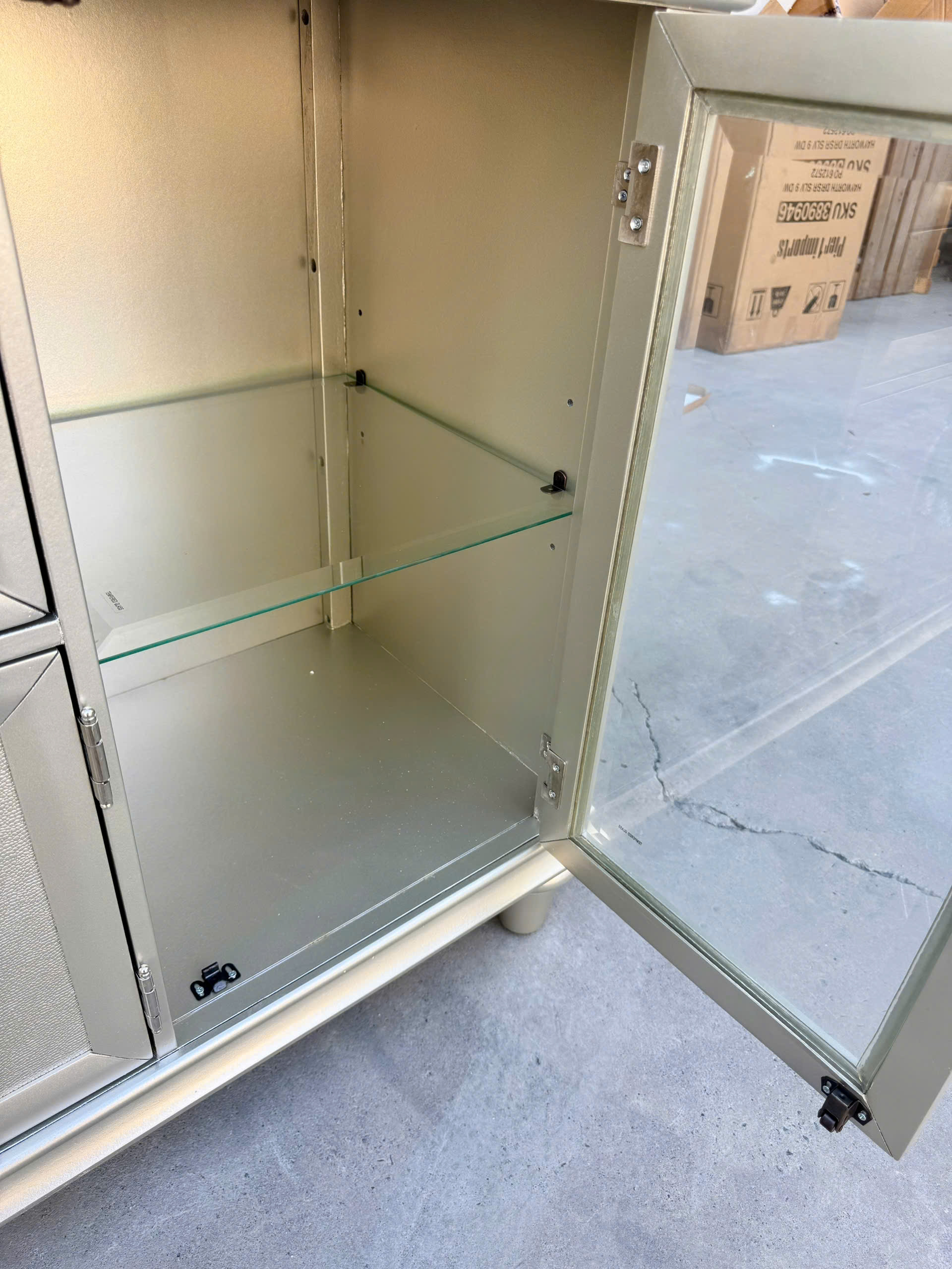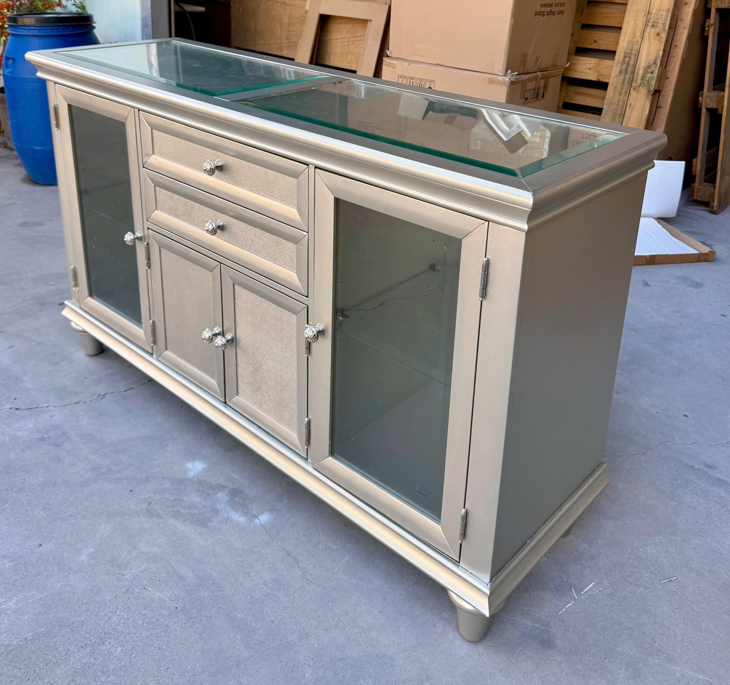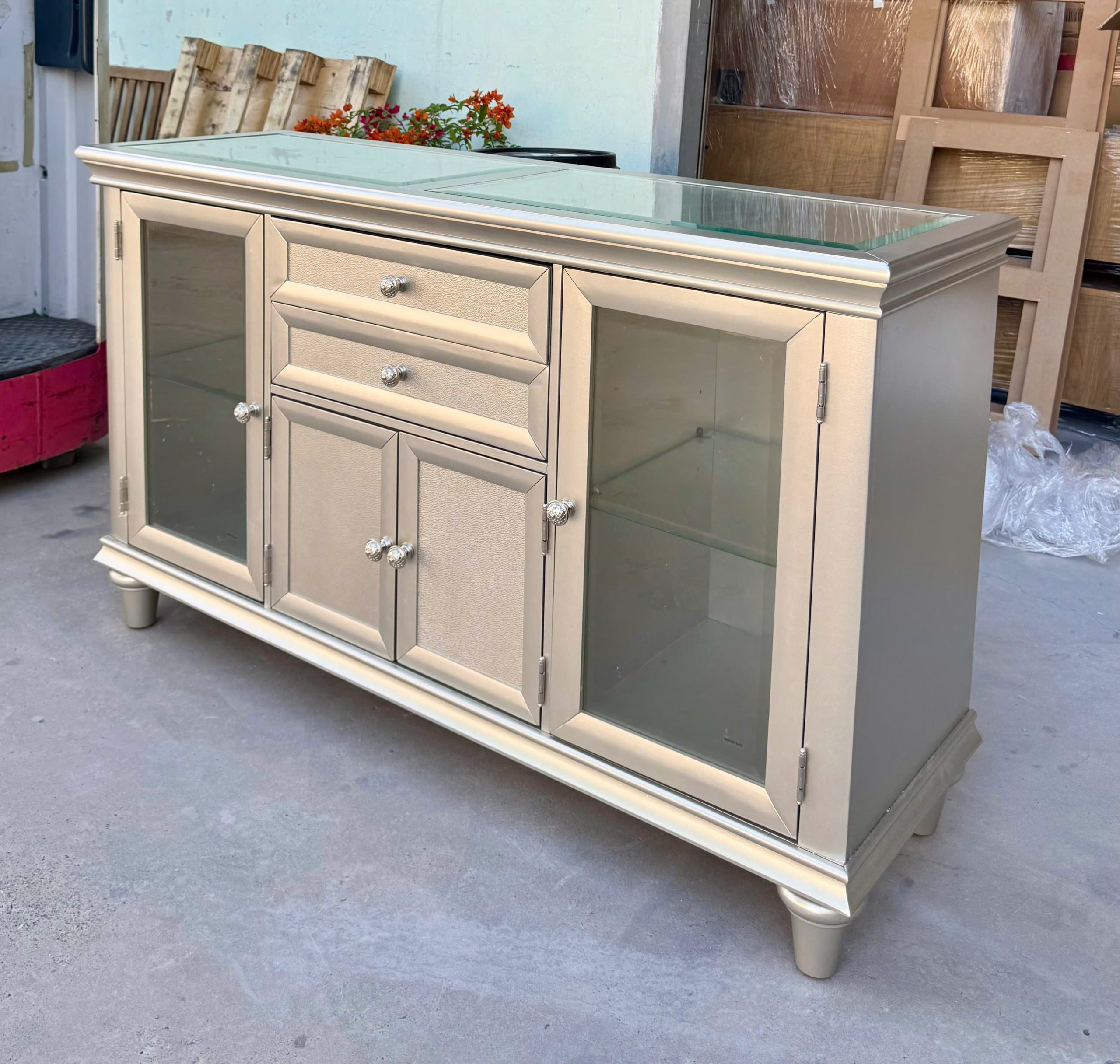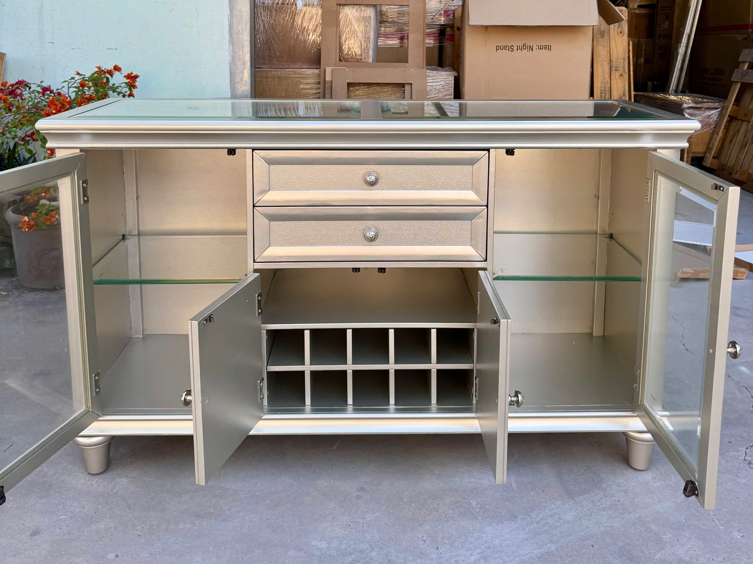 Tủ Buffet 4 cánh 2 ngăn kéo màu bạc, có kính cường lực sang trọng