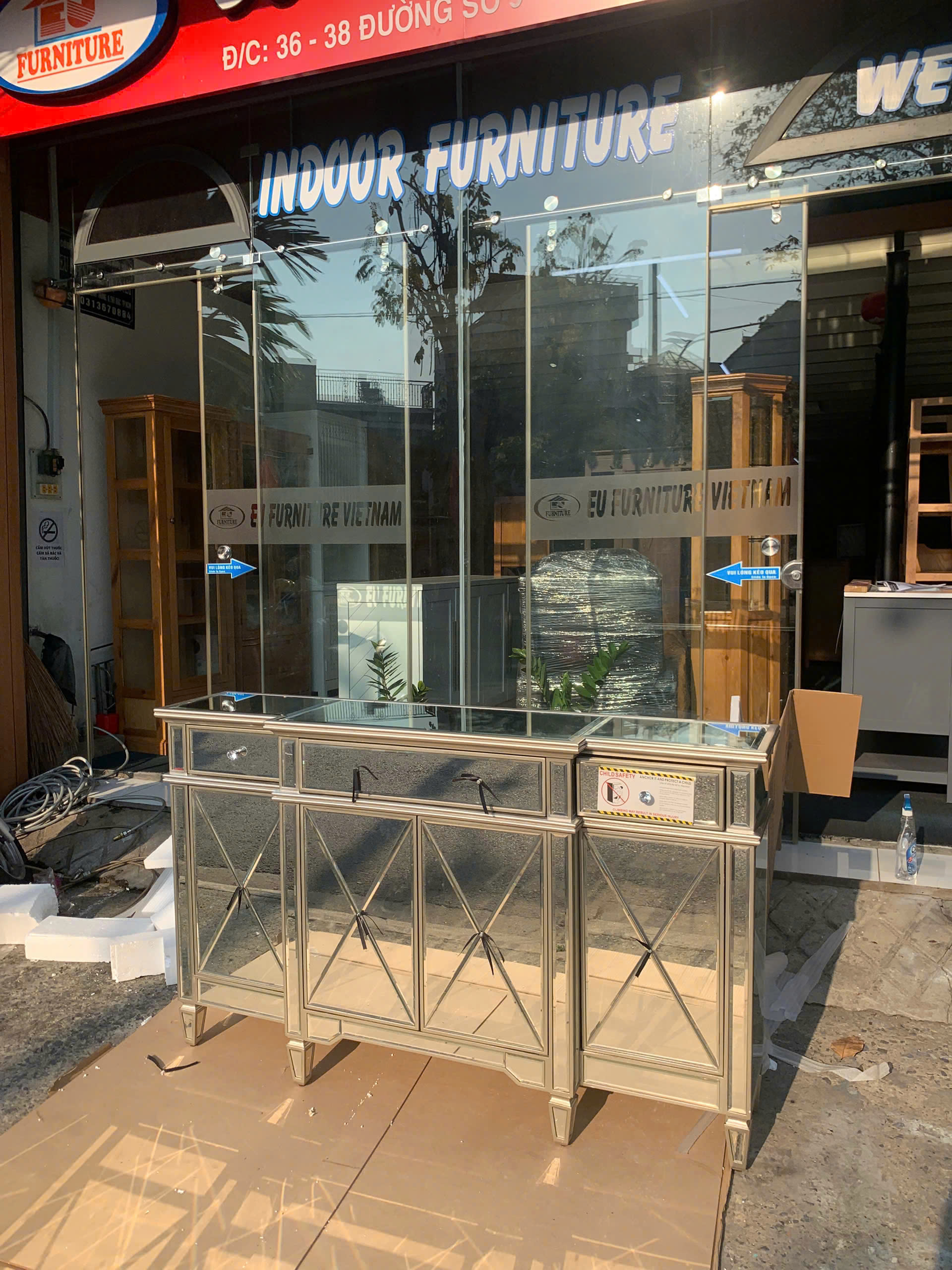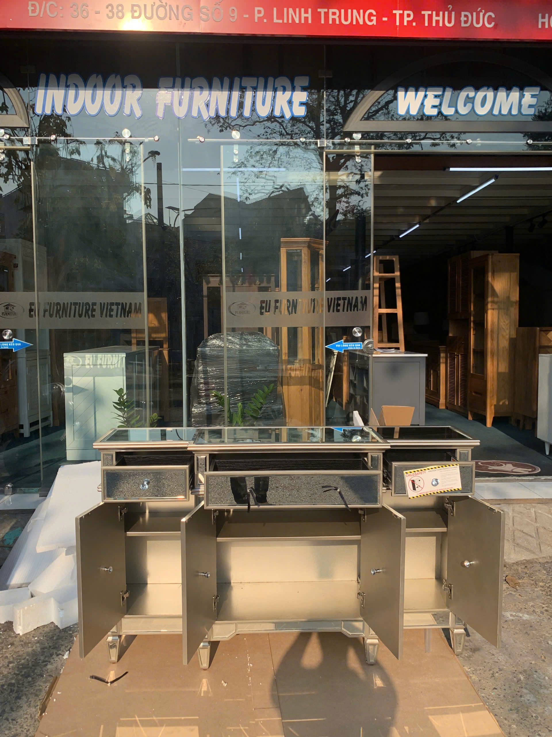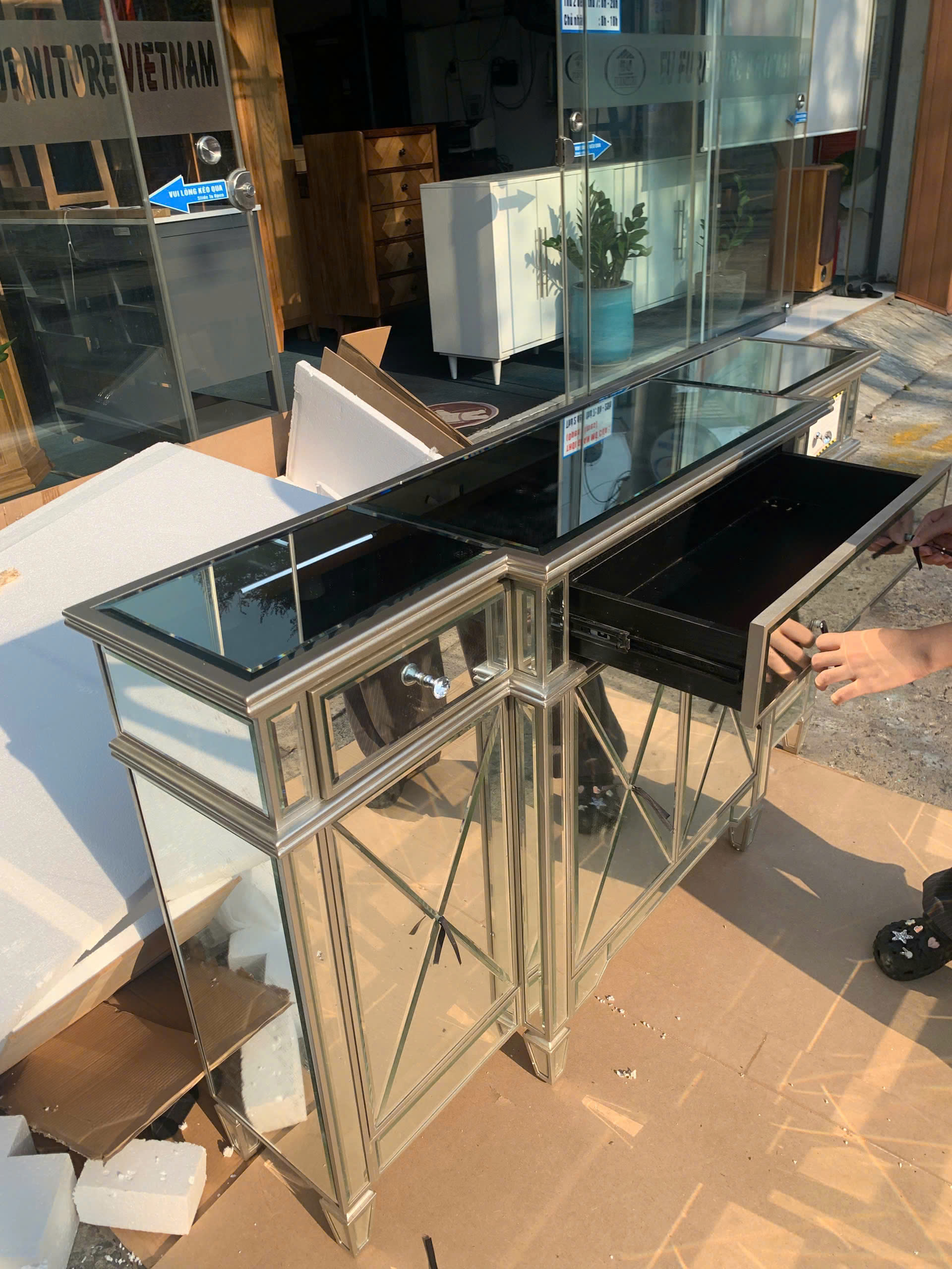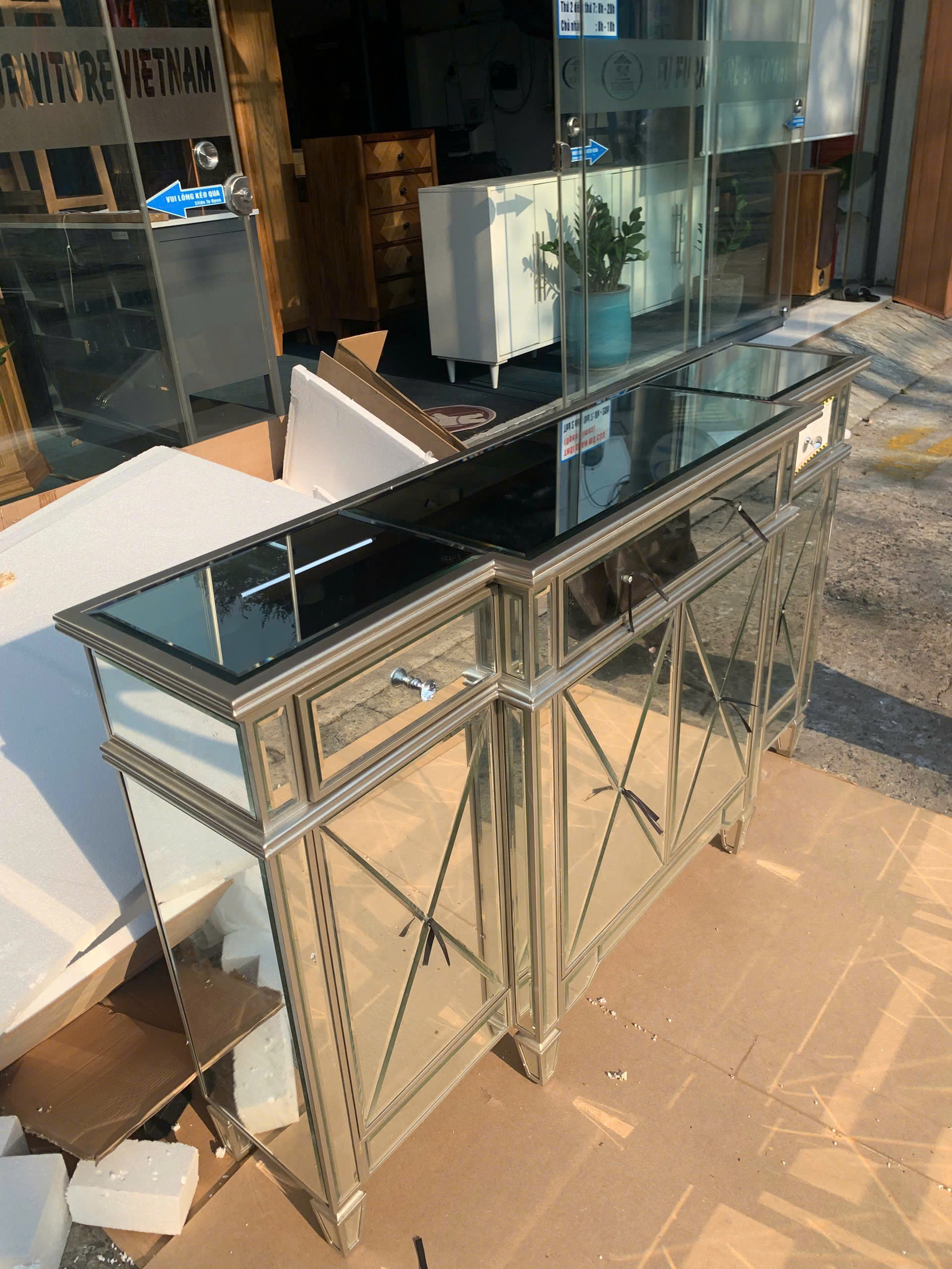 Tủ buffet, tủ bếp 4 cánh 3 ngăn ốp gương