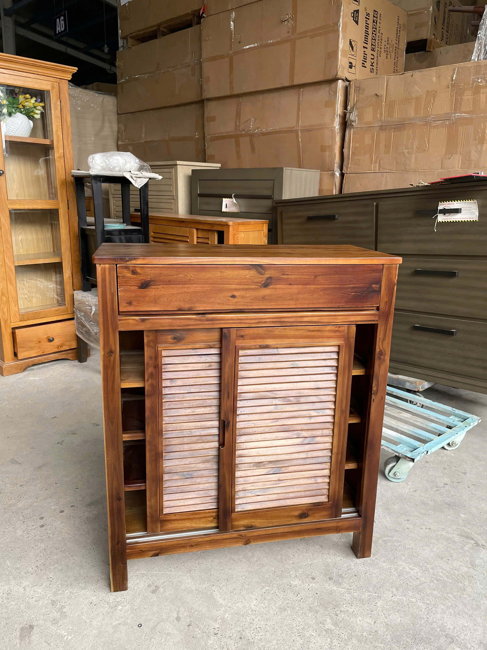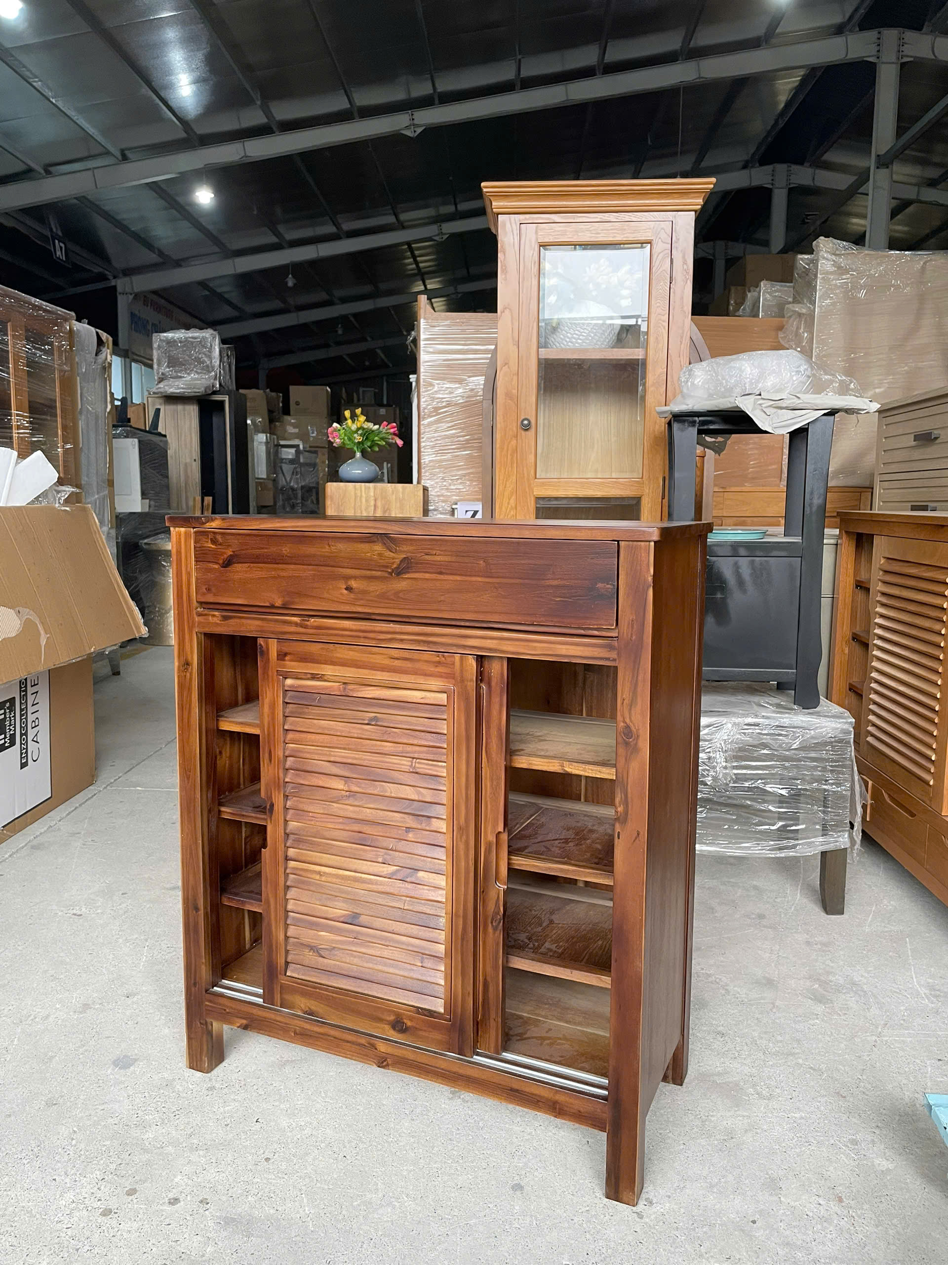 Be the first to review “Tủ giày cửa lùa 2 cánh 1 ngăn kéo gỗ Tràm màu nâu”