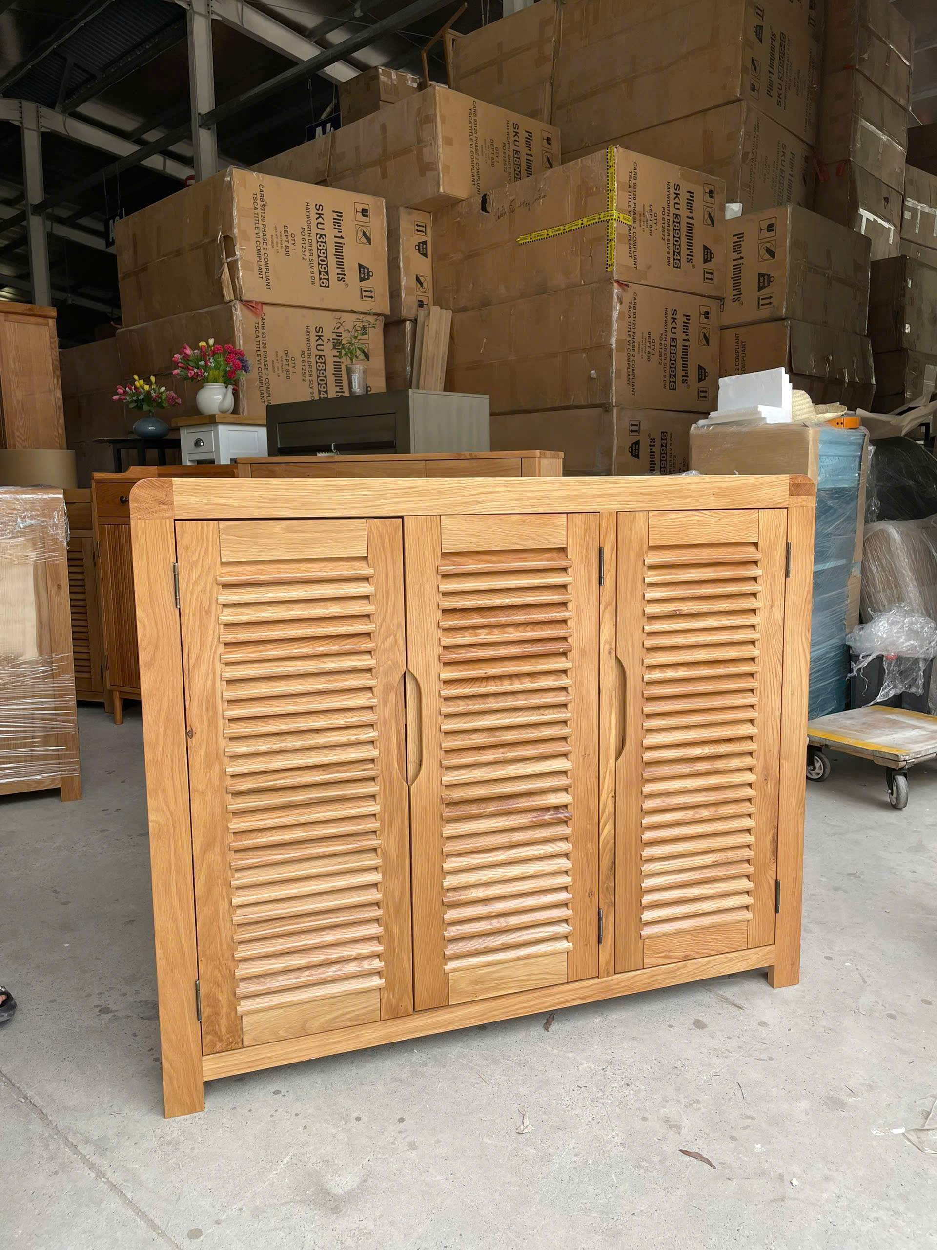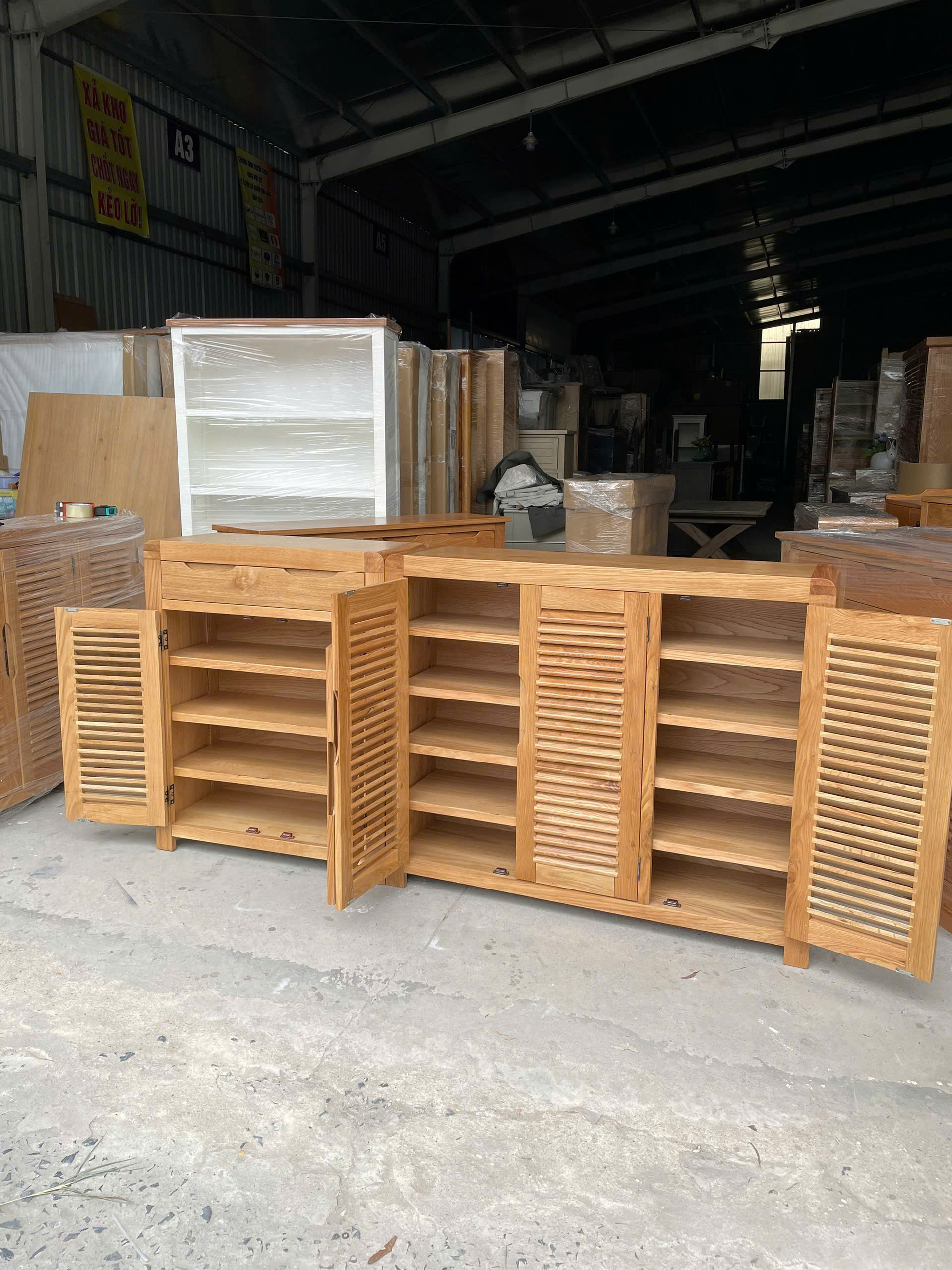 hiện đang bán tủ giày dép gỗ sồi Mỹ 3 cánh cong