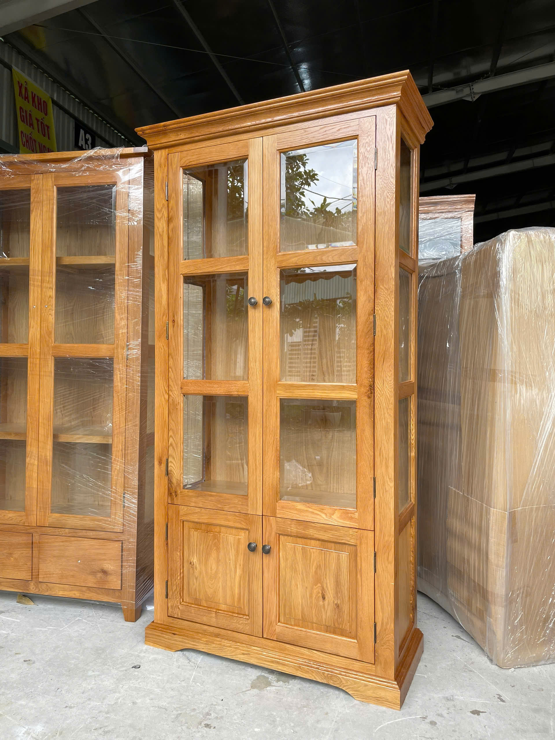 Be the first to review “Tủ trưng bày gỗ sồi 3 mặt kính 2 cánh 2 hộc CMR”